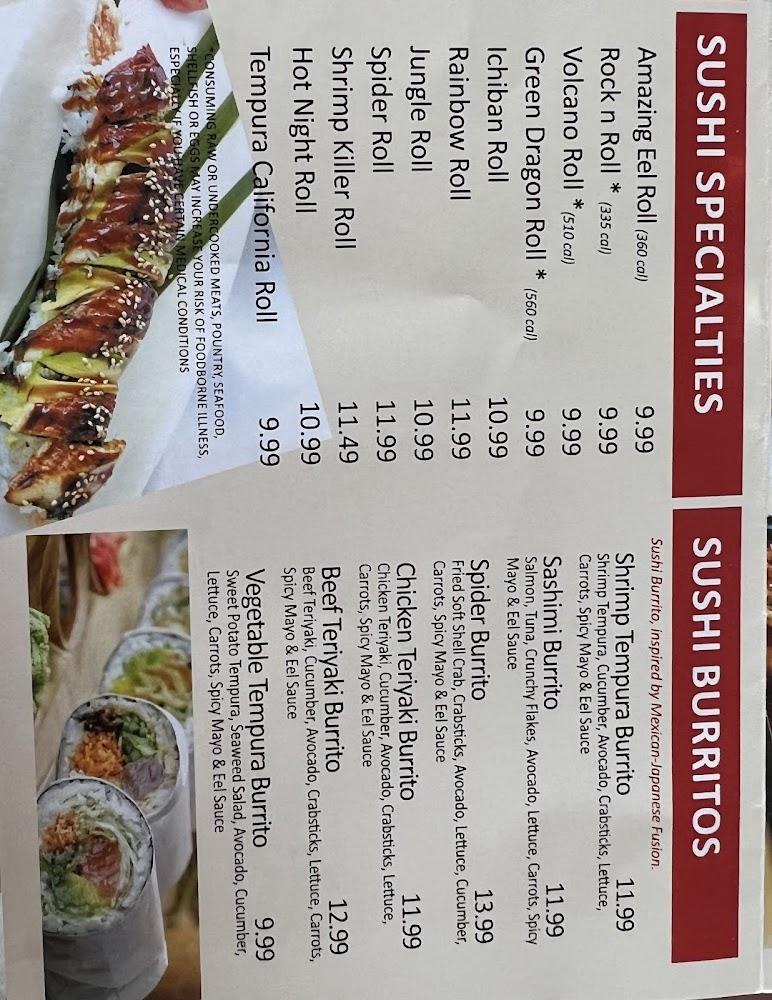 Ichiban’s menu comprises various choices for every palate. Sushi options range from classic rolls like the California roll to special rolls like the Green Dragon and Amazing Eel Rolls. The sushi burritos twist conventional sushi into a convenient, delicious package.